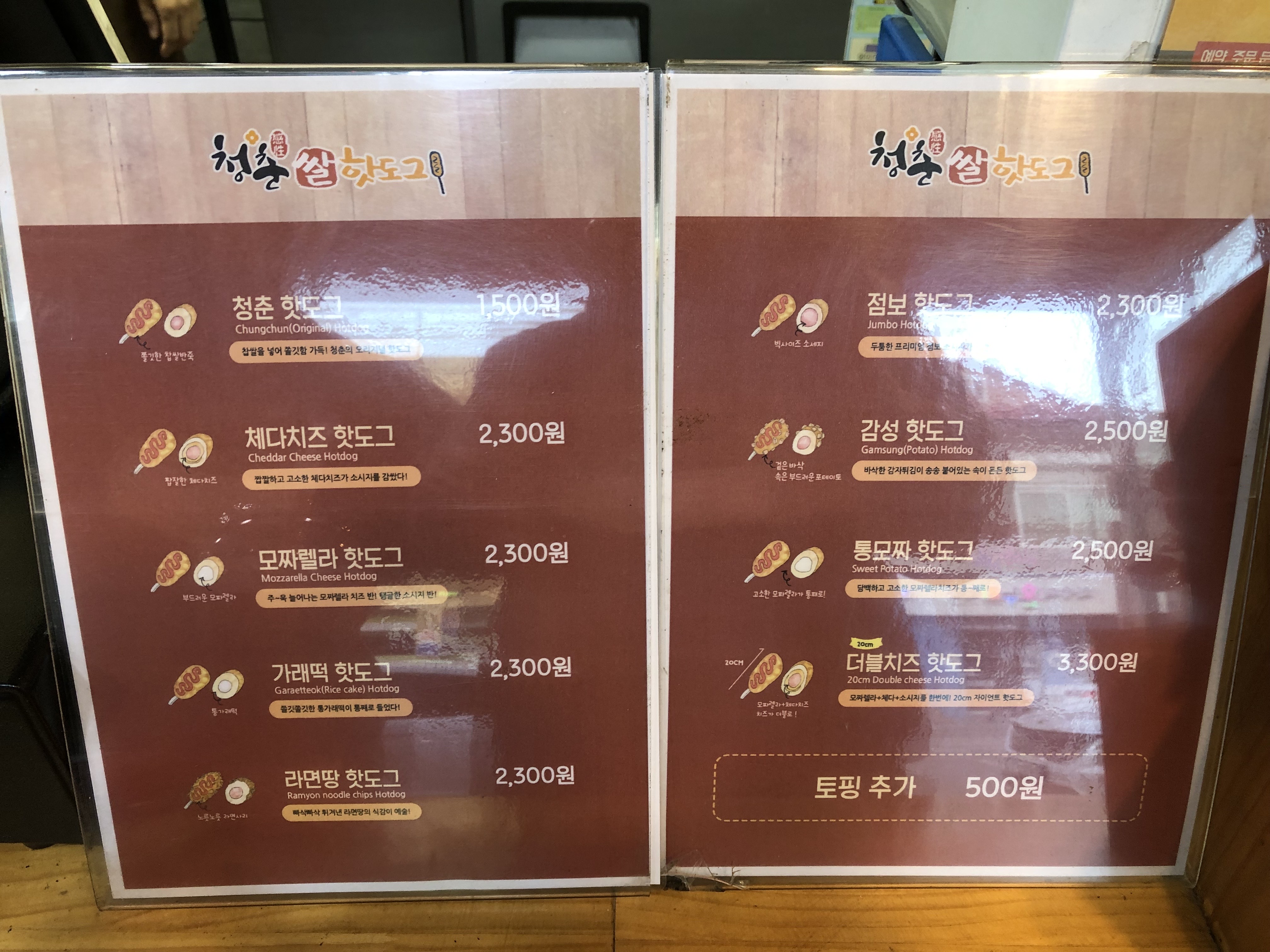 여기의 기본 핫도그인 청춘 핫도그부터 해서