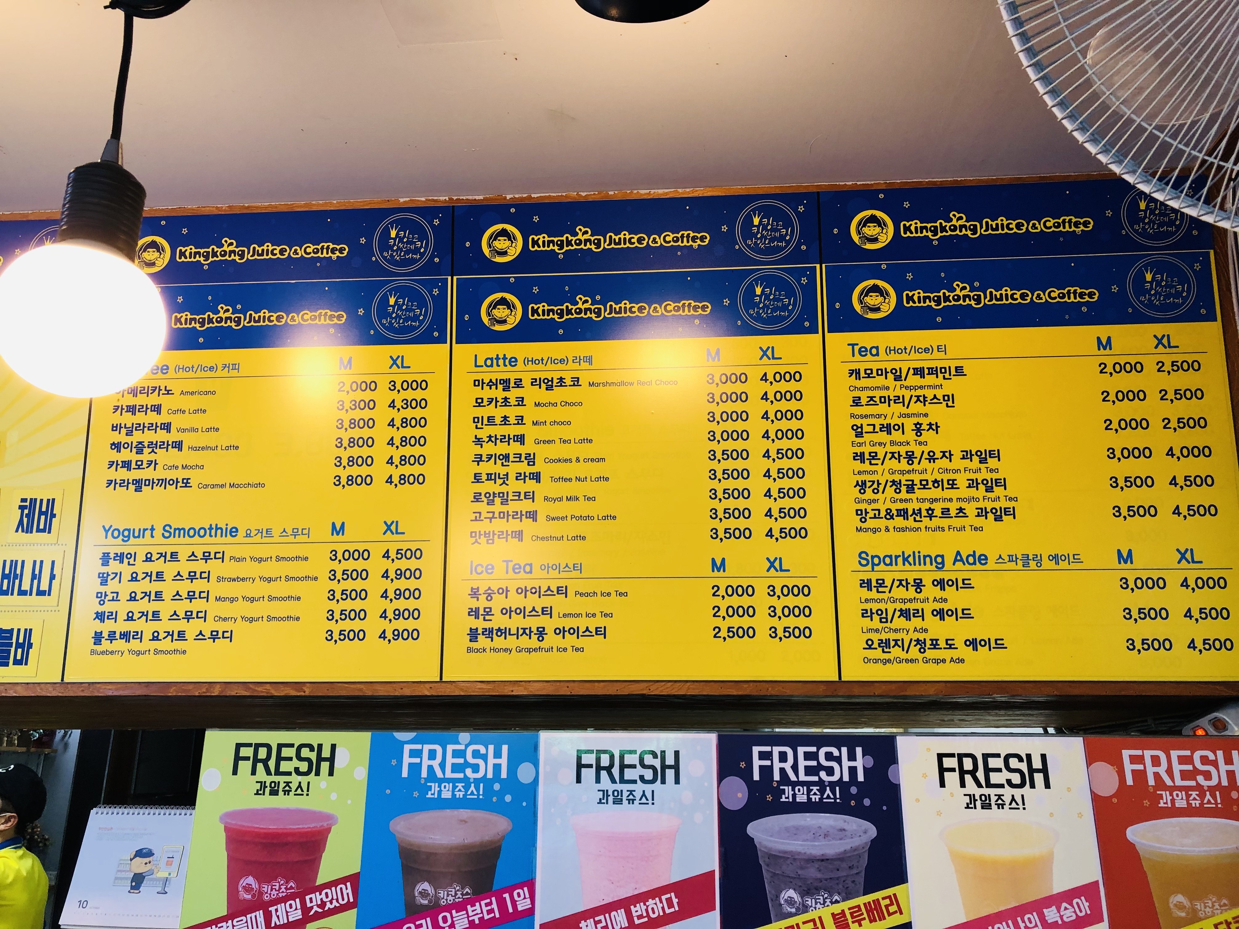철원 청춘핫도그는 킹콩쥬스&커피도 같이 하고 있었어요.
