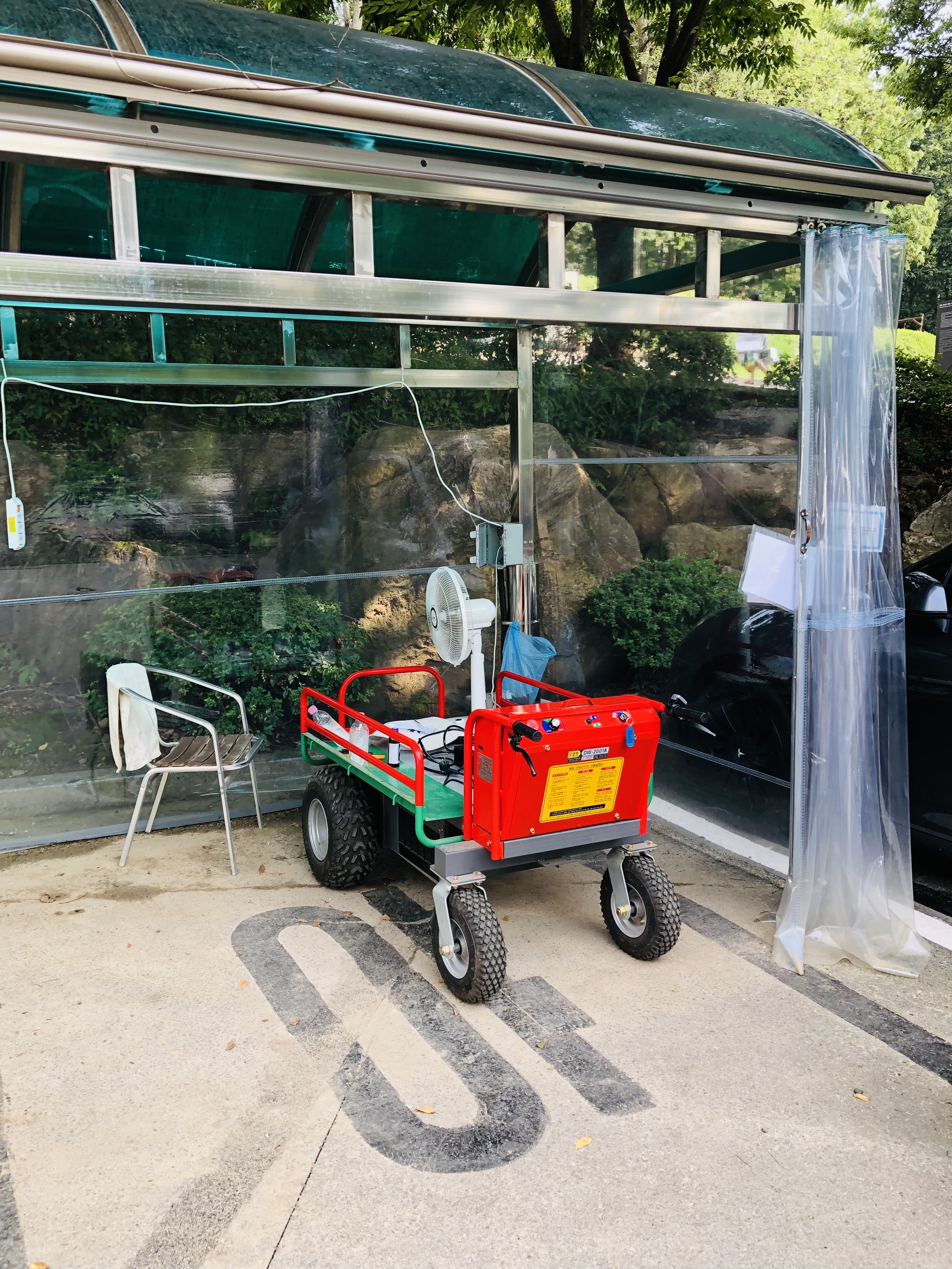 데크 바로 옆까지 길을 포장해 놔서 전동카트로 올라가면 된다고 하면서